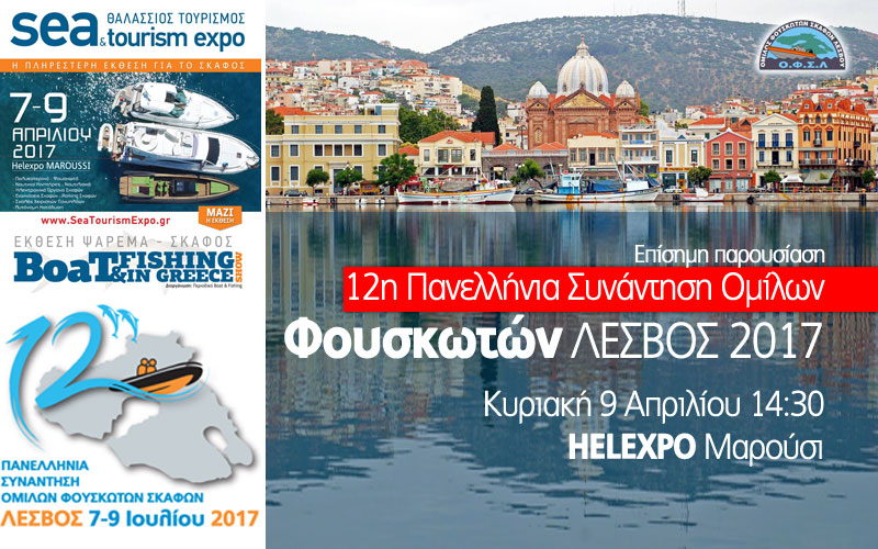 Ο Όμιλος Φουσκωτών Σκαφών Λέσβου (Ο.Φ.Σ.Λ.), υπό την Αιγίδα του Δήμου ΛΕΣΒΟΥ και της ΕΟΜΟΦΣ, παρουσιάζει την 12η ΠΑΝΕΛΛΗΝΙΑ ΣΥΝΑΝΤΗΣΗ ΟΜΙΛΩΝ ΦΟΥΣΚΩΤΩΝ που θα πραγματοποιηθεί στο πανέμορφο νησί της ΛΕΣΒΟΥ από τις 7 ως τις 9 Ιουλίου 2017.