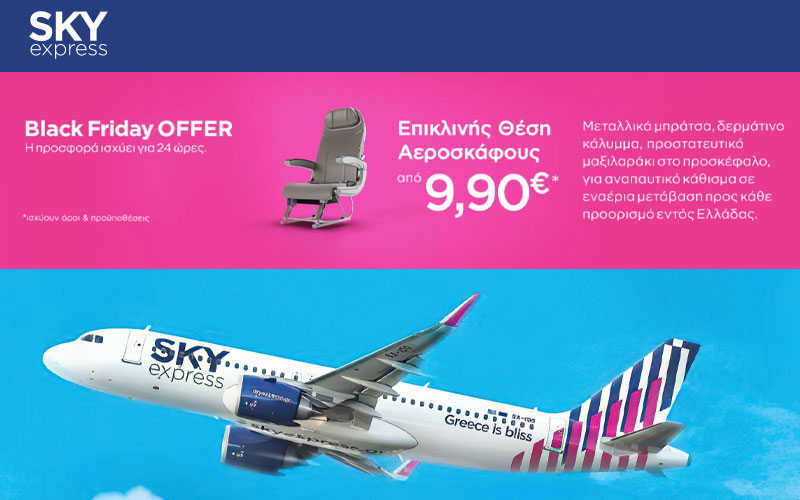Για να βρείτε τα εισιτήρια σας με SKY EXRPESS πατήστε εδώ: https://www.skyexpress.gr/el/news/black-friday-offer