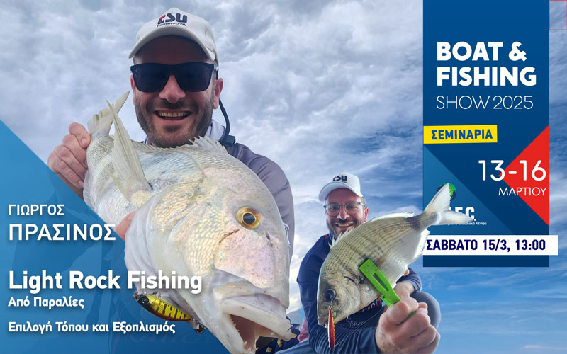 Το Σάββατο 15 Μαρτίου 2025 και ώρα 13:00, στην αίθουσα σεμιναρίων της Boat & Fishing Show 2025, ο Γιώργος Πράσινος θα μας παρουσιάσει τα μυστικά του Light Rock Fishing (LRF) από παραλίες.