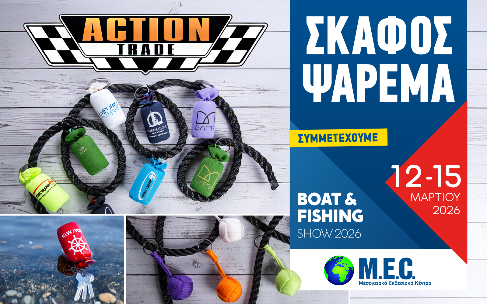 Στο πολύχρωμο περίπτερο της Action Trade, οι επισκέπτες θα ανακαλύψουν μια ποικιλία από μικροαντικείμενα που αφορούν τις θαλασσινές δραστηριότητες, είτε στο σκάφος είτε στο ψάρεμα.