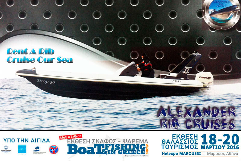 Για τρίτη συνεχόμενη χρονιά ο Αλέξανδρος Κουταβάς και η ομάδα του συμμετέχει στη Boat & Fishing Show – Έκθεση Ψάρεμα Σκάφος και την Έκθεση Θαλάσσιος Τουρισμός Sea & Tourism expo και με την εταιρεία, Alexander RIB Cruises