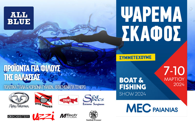 Η ALL BLUE δραστηριοποιείται στον χώρο των θαλάσσιων σπορ και των δραστηριοτήτων αναψυχής με ειδίκευση στα γυαλιά προστασίας και στα αξεσουάρ θαλάσσιων σπορ. Στη μεγάλη σειρά γυαλιών προστασίας της επιχείρησης θα βρείτε από γυαλιά σκοποβολής, αλεξίπτωτο, καγιάκ, moto-cross, μάσκες σκι ως jet-ski και φουσκωτό (water repellent γλιστράει το νερό) αλλά και μια μεγάλη σειρά πολωτικών γυαλιών σε μοντέρνα σχέδια.