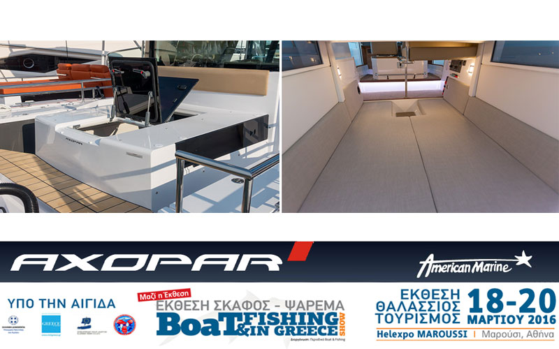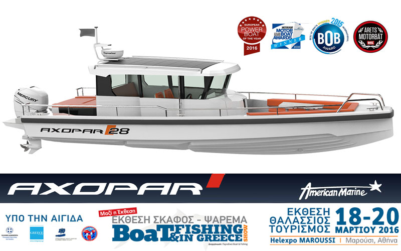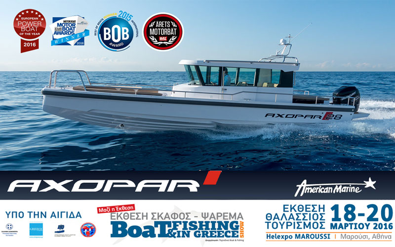Η American Marine παρουσιάζει για πρώτη φορά στην Ελληνική αγορά το βραβευμένο AXOPAR 28 Cabin στην έκθεση Boat & Fishing Show 2016! Τα AXOPAR κατασκευάζονται στην Φιλανδία, προσφέρουν εντυπωσιακές επιδόσεις και λειτουργικότητα και διατίθονται σε αρκετά μοντέλα από τα 7,5 μέτρα σε τιμές έκπληξη!