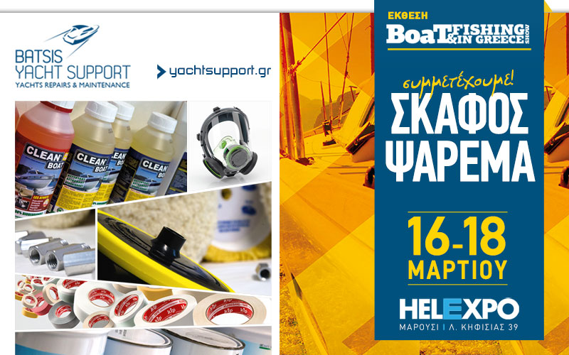 Εμπιστευτείτε την συντήρηση και τον εξοπλισμό του σκάφους σας στα χέρια των ειδικών. H Batsis Yacht Support ολοκληρώνει την παρουσία της στον τομέα της τεχνικής υποστήριξης των σκαφών αναψυχής, παρέχοντας μία σειρά ναυτιλιακών ειδών για τη συντήρηση και τον εξοπλισμό του σκάφους σας που μπορείτε να τα δείτε από κοντά στην έκθεση Ψάρεμα Σκάφος – Boat & Fishing Show .