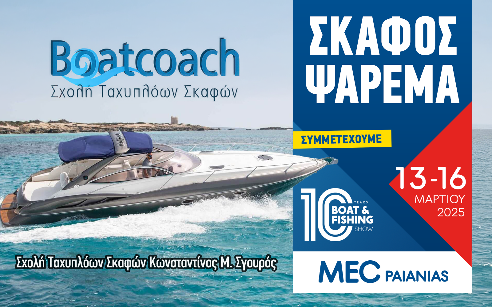 Η Boatcoach, με έδρα τη Ραφήνα, εξειδικεύεται στην εκπαίδευση χειριστών ταχύπλοων σκαφών, προσφέροντας θεωρητικά και πρακτικά μαθήματα που διασφαλίζουν την ασφάλεια στη θάλασσα. Η στενή σχέση του Κωνσταντίνου Μ. Σγουρού με τα ταχύπλοα σκάφη και τη διδασκαλία για το δίπλωμα ξεκίνησε το 1985, σε ηλικία 13 ετών, όταν δούλευε μαζί με τον πατέρα του στη σχολή Ταχύπλοων Σκαφών που διατηρούσε ο πατέρας του στη Ραφήνα, και έκτοτε εξελίχθηκε σε πάθος.
