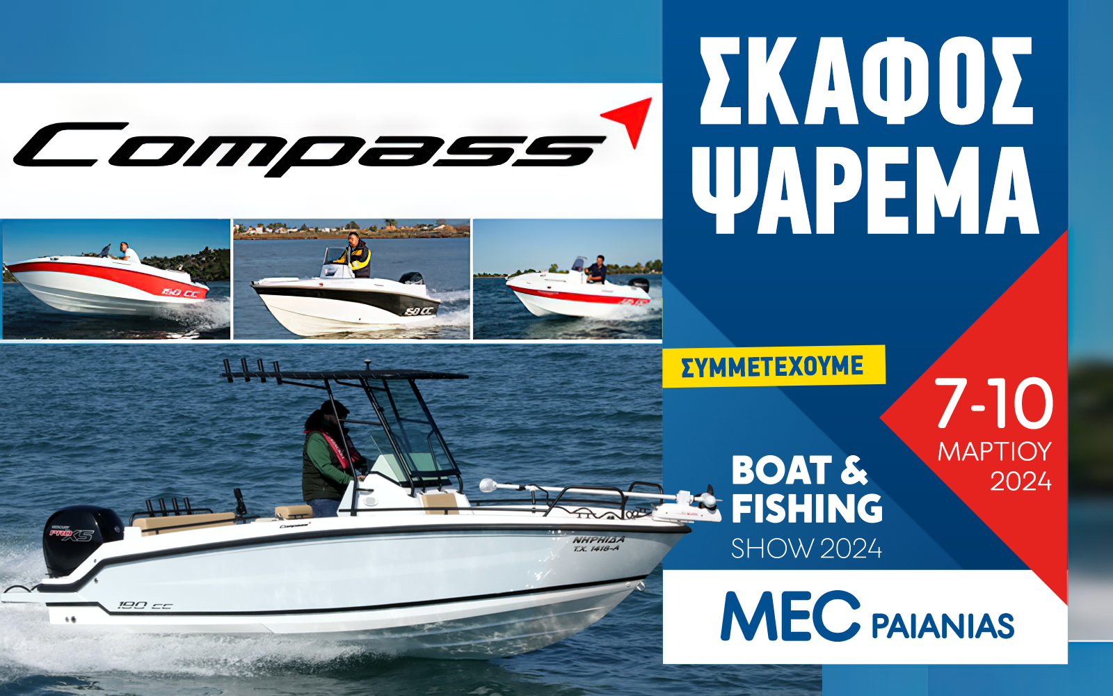 Δείτε όλα τα νέα και εντυπωσιακά COMPASS στο μεγάλο κεντρικό περίπτερο, και ενημερωθείτε για τις επιδόσεις και τον πρωτοποριακό τρόπο κατασκευής, αποκλειστικά και μόνο στην Boat & Fishing Show.
