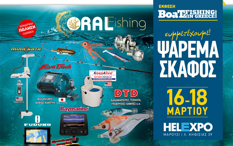 Παρουσιάζοντας την μεγάλη γκάμα εξειδικευμένων προϊόντων ειδών αλιείας που εισάγει και διανέμει σε όλη την Ελλάδα. Στο μεγάλο περίπτερο θα παρουσιάσει τις ηλεκτρονικές άγκυρες Minn kota, τα βυθόμετρα Humminbird, Κροατικές καλαµαριέρες DTD, τη γκάμα Osprey Fishing και Coral που εισάγει αποκλειστικά. Επίσης τους ηλεκτρικούς μηχανισμούς Miya αλλά και εταιρείες όπως JIGGING MASTER, FINS, HYDRO GLOW και πολλές ακόµη.