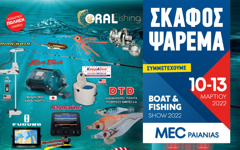 Παρουσιάζοντας την μεγάλη γκάμα εξειδικευμένων προϊόντων ειδών αλιείας που εισάγει και διανέμει σε όλη την Ελλάδα. Στο μεγάλο περίπτερο θα παρουσιάσει τις ηλεκτρονικές άγκυρες Minn kota, τα βυθόμετρα Humminbird, Κροατικές καλαµαριέρες DTD, τη γκάμα Osprey Fishing και Coral που εισάγει αποκλειστικά. Επίσης τους ηλεκτρικούς μηχανισμούς Miya αλλά και εταιρείες όπως JIGGING MASTER, FINS, HYDRO GLOW και πολλές ακόµη.