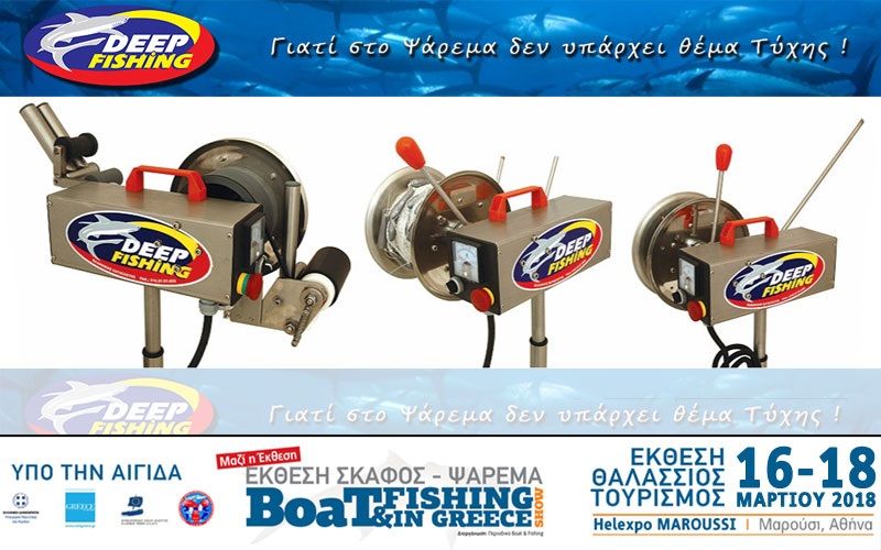 Ο Σπύρος Πατσής, κατασκευαστής των ηλεκτρικών μηχανισμών Deep Fishing, παρουσιάζει αποκλειστικά και μόνο στην Boat & Fishing Show – Έκθεση Ψάρεμα Σκάφος όλη τη γκάμα μηχανισμών. Μηχανισμοί για συρτή βυθού, βαθιές καθετές, παραγάδι κλπ. Καθώς και τους μηχανισμούς AVET, κατασκευασμένους στην Αμερική, αλλά και πλούσια γκάμα εξοπλισμού.
