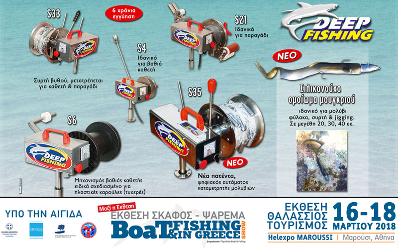 Ο Σπύρος Πατσής, κατασκευαστής των ηλεκτρικών μηχανισμών Deep Fishing, παρουσιάζει αποκλειστικά και μόνο στην Boat & Fishing Show – Έκθεση Ψάρεμα Σκάφος όλη τη γκάμα μηχανισμών για συρτή βυθού, βαθιές καθετές, παραγάδι κλπ καθώς και τους μηχανισμούς AVET, κατασκευασμένους στην Αμερική, αλλά και πλούσια γκάμα εξοπλισμού.