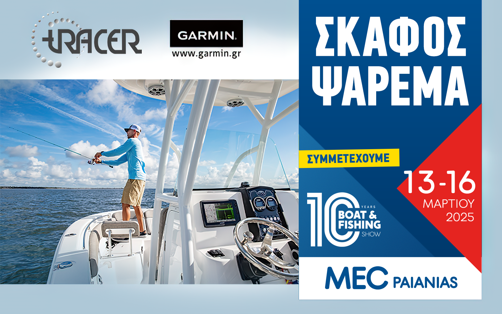 Η Digital Tracer Electronics ΑΕ, αποκλειστικός αντιπρόσωπος της Garmin στην Ελλάδα, θα παρουσιάσει στην Boat & Fishing Show όλα τα τελευταία μοντέλα βυθομέτρων και πλότερ Garmin. Επισκεφθείτε το περίπτερο της Garmin για να ανακαλύψετε τις πιο σύγχρονες τεχνολογίες στα ηλεκτρονικά συστήματα για ψάρεμα και θαλάσσια ταξίδια.