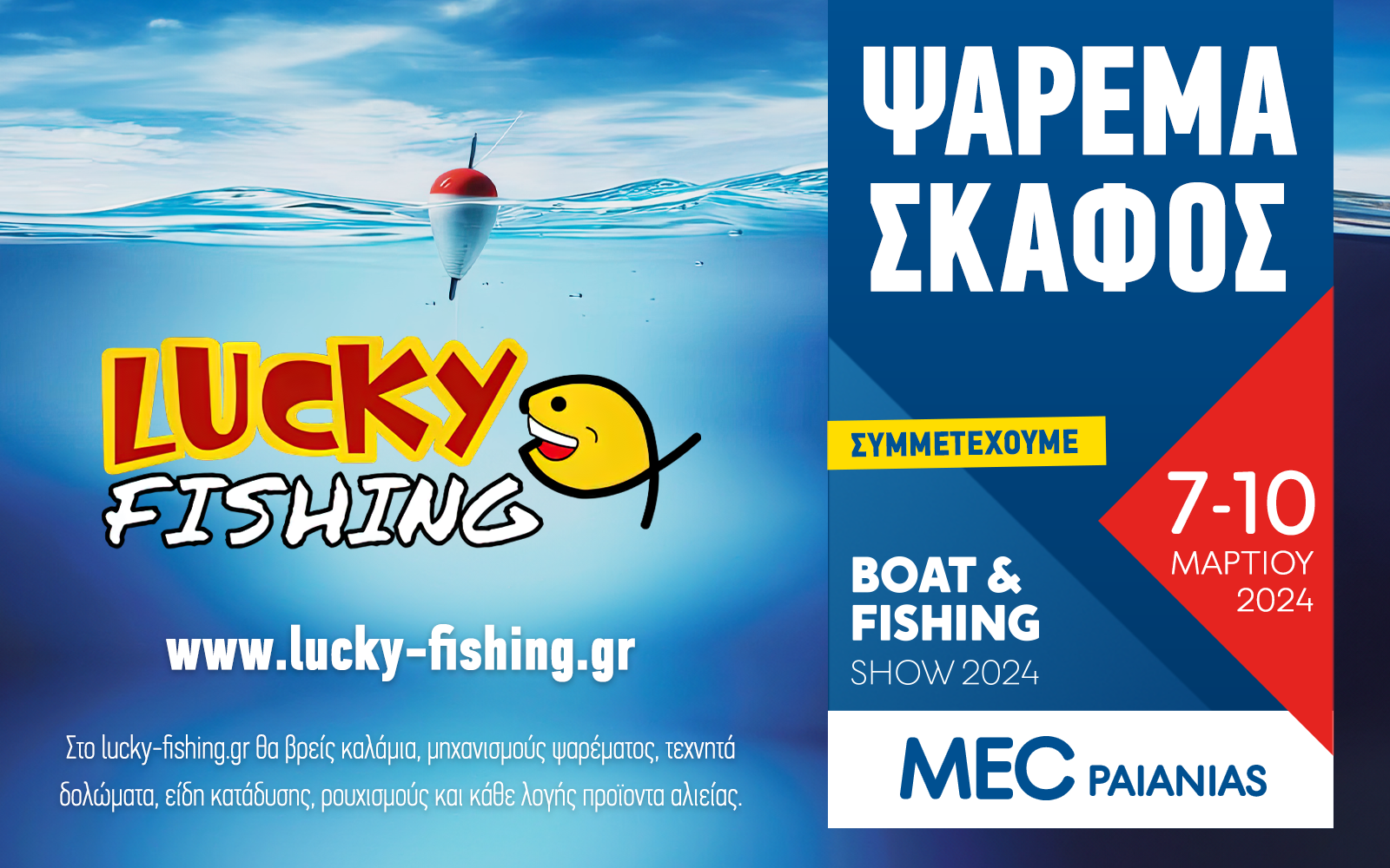 Στο μεγάλο κεντρικό περίπτερο της Lucky Fishing θα βρείτε τα αγαπημένα σας είδη αλιείας στις καλύτερες τιμές.
