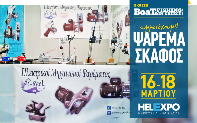 Επισκεφτείτε το περίπτερο της El Reel για να γνωρίσετε από κοντά τους Ηλεκτρικούς Μηχανισμούς Ψαρέματος για καλάμι. Δείχνοντας στο κοινό μία ελληνική πατέντα που μετατρέπει κάθε μηχανισμό για καλάμι σε ηλεκτρικό.