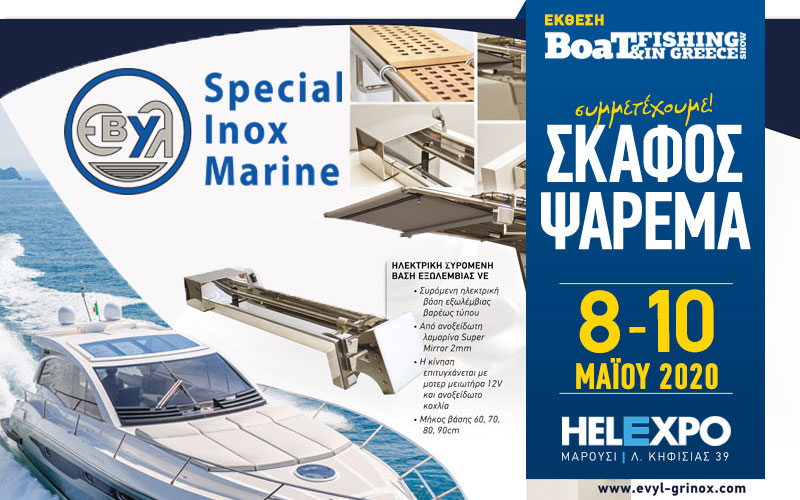 Η EVYL SA με  τη μεγάλη γκάμα ανοξείδωτων ναυτιλιακών κατασκευών συμμετέχει στην έκθεση Ψάρεμα Σκάφος – Boat & Fishing Show 2020, 8 – 10 Μαΐου, Helexpo Maroussi!