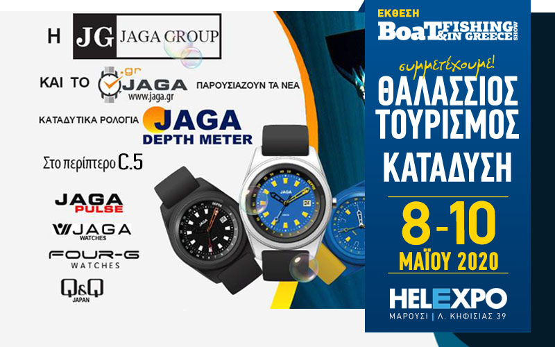 Στο εκθεσιακό περίπτερο της Jaga Group θα βρείτε καταδυτικά ρολόγια Jaga, με την γνωστή ιαπωνική τεχνολογία της κατασκευάστριας Citizen. Καθώς επίσης και διάφορα αθλητικά αδιάβροχα ρολόγια.