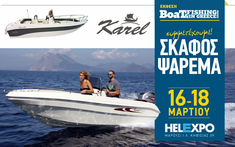 Δείτε από κοντά τις νέες προτάσεις τις KAREL BOATS τόσο για το ψάρεμα, όσο και για την αναψυχή, στην διπλή έκθεση BOAT & FISHING SHOW 2018 – SEA & TOURISM EXPO, 16-18 Μαρτίου στο εκθεσιακό κέντρο HELEXPO MAROUSSI.