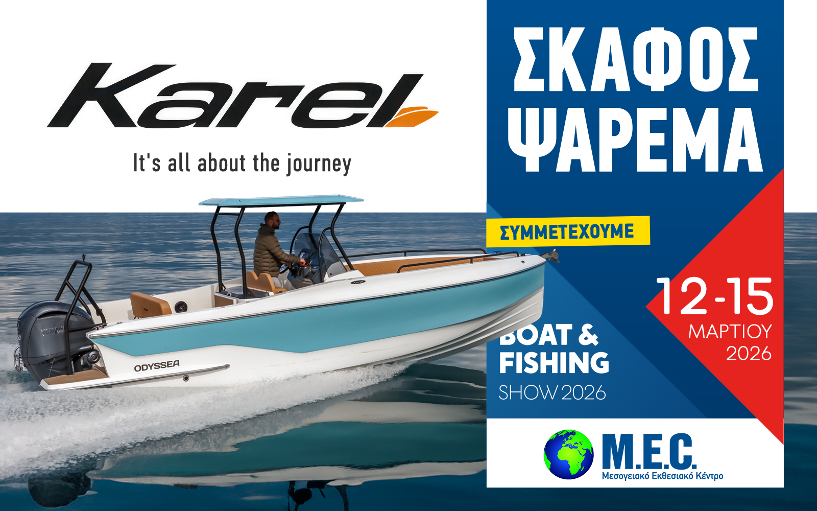 Η Karel Boats συμμετέχει στην έκθεση Σκάφος Ψάρεμα – Boat & Fishing Show 2026, που θα πραγματοποιηθεί από τις 12 έως τις 15 Μαρτίου 2025 στο MEC Παιανίας.