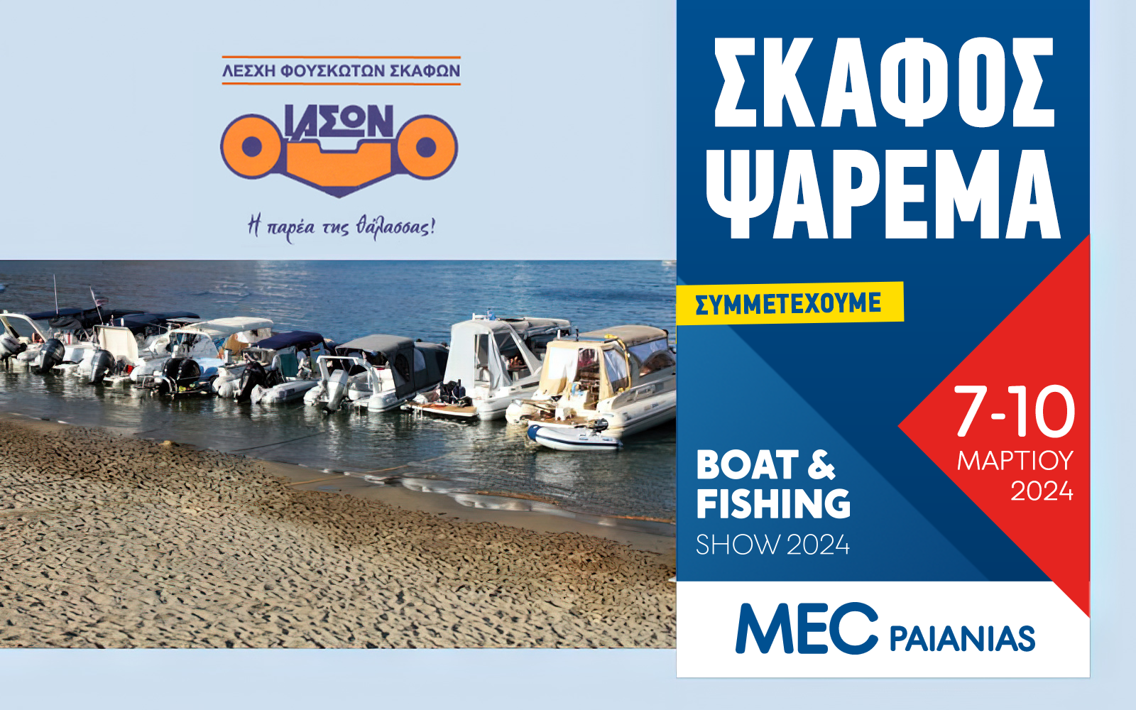 Η Λέσχη Φουσκωτών Σκαφών «ΙΑΣΩΝ» συμμετέχει στην έκθεση Σκάφος Ψάρεμα – Boat & Fishing Show 2024, 7-10 Μαρτίου, MEC Παιανίας!