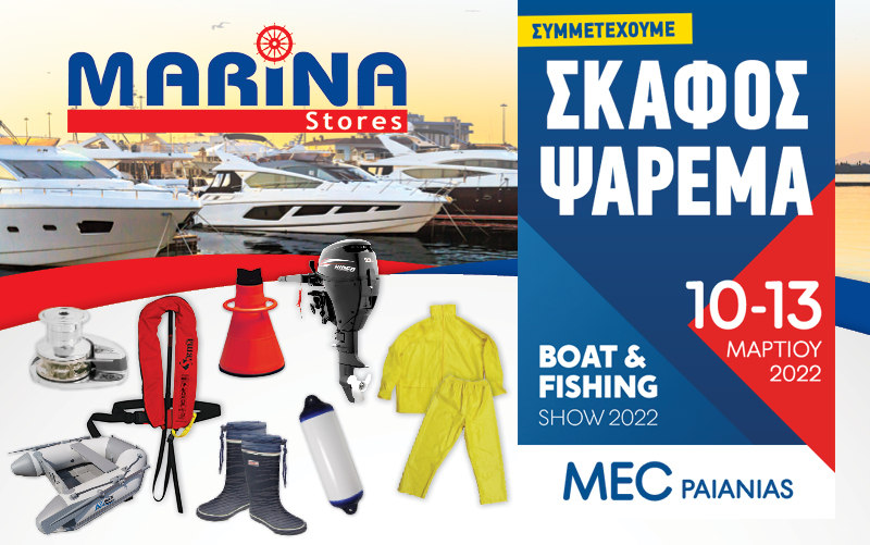 Όλοι οι φίλοι της θάλασσας και του ψαρέματος, θα μπορείτε να μας βρείτε στο περίπτερο των MARINA Stores και να πληροφορηθείτε για τη μεγάλη ποικιλία σωστικού εξοπλισμού (σωσίβια φουσκωτά & αφρού, πλευστικά βοηθήματα, σωστικές σχεδίες και φανοί) που διαθέτουμε.