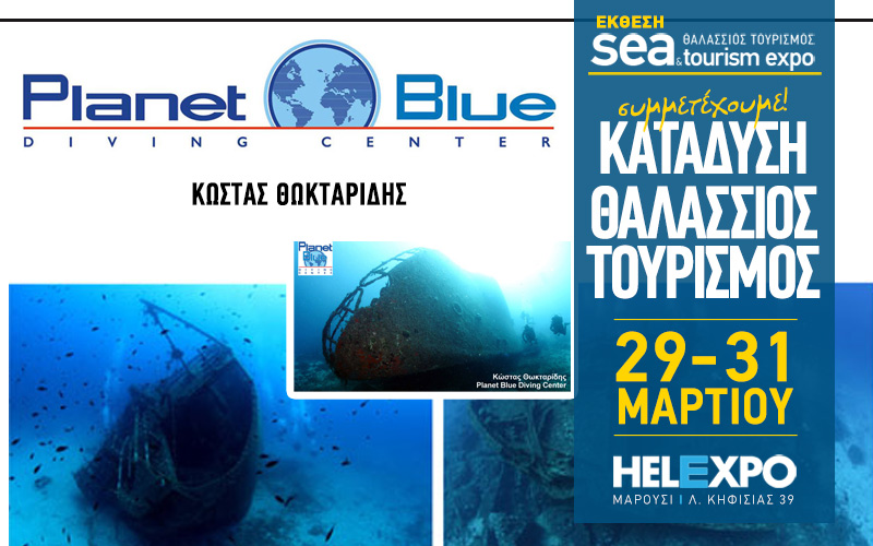 Το Κέντρο Καταδύσεων Planet Blue Diving Center συμμετέχει στην έκθεση Θαλάσσιος Τουρισμός – Sea & Tourism Expo 2019 που διοργανώνεται παράλληλα με την Boat & Fishing Show 2019 – Έκθεση Ψάρεμα Σκάφος, 29 – 31 Μαρτίου, Helexpo Maroussi!