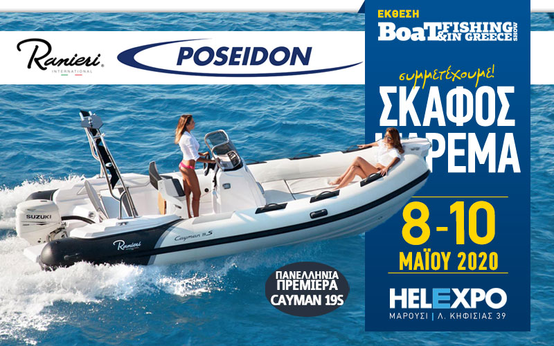 Στο περίπτερο της POSEIDON BOATS, εκτός από μία μεγάλη γκάμα των σκαφών μοντέλων, θα βρούμε σε Πανελλήνια Πρεμιέρα το Ranieri Cayman 19S.