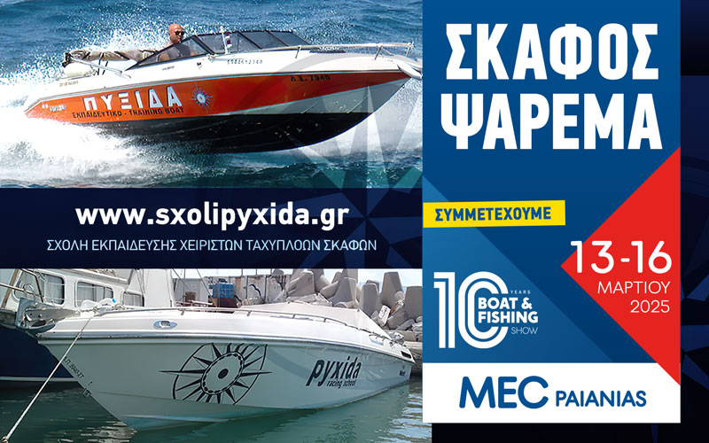 Η Σχολή Ταχυπλοΐας “Πυξίδα” του Παναγιώτη Σιοροβίγκα συμμετέχει στην έκθεση BOAT & FISHING SHOW 2025 , 13-16 Μαρτίου, MEC Παιανίας!