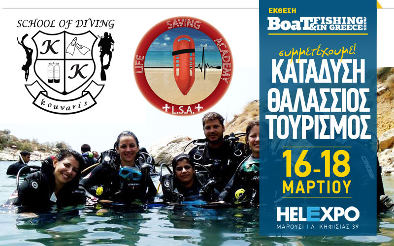 Το SCHOOL OF DIVING και η ναυαγοσωστική σχολή LIFE SAVING ACADEMY– L.S.A. και πάλι στην Boat & Fishing Show και Sea & Tourism Expo. Θα παρουσιάσουν σε όλο το θαλασσινό κοινό τις υπηρεσίες τους στο τµήµα Θαλάσσιου Τουρισµού.