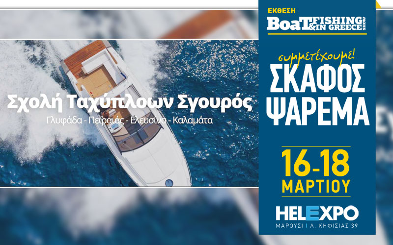 Μάθε τι χρειάζεσαι και απόκτησε δίπλωμα ταχύπλοου σκάφους, στη σχολή ΣΓΟΥΡΟΣ στην έκθεση Boat&fishing SHOW 2018 – sea&tourism expo, 16-18 Μαρτίου, HELEXPO MAROUSSI.