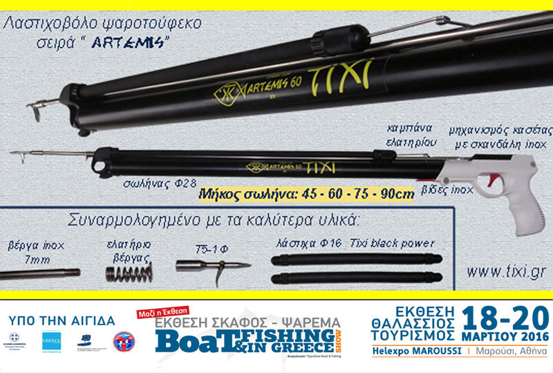 Η εταιρεία TIXI, παρουσιάζει στην Boat&fishing show 2016 τη µεγάλη ποικιλία εξοπλισµού Ελληνικής κατασκευής που διαθέτει, όπως πρωτότυπες απόχες, κιούρτους, καµάκια, παραδοσιακές ζόκες, αλλά και μοντέρνα ζοκάκια µε χάντρες Swarovski, λάστιχα, βέργες, ψαροτούφεκα.