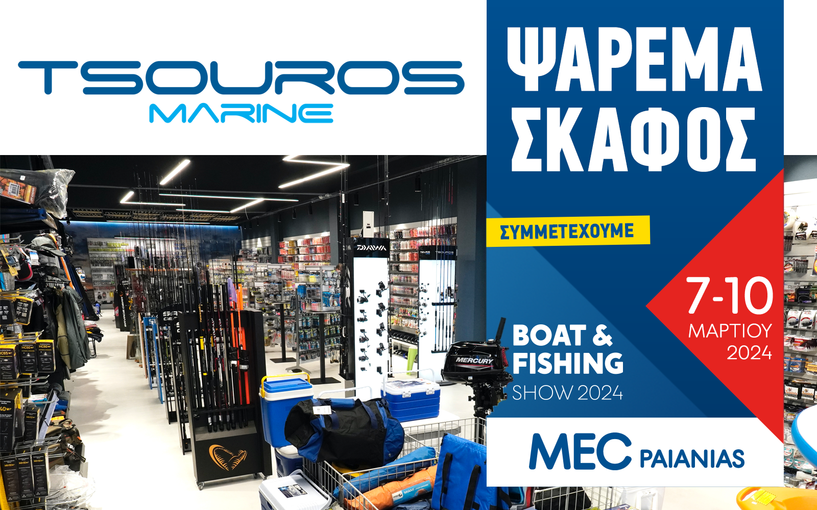 Συμμετέχουμε στην Έκθεση Boat & Fishing Show 2024 για να παρουσιάσουμε νέα προϊόντα αλιείας τα οποία δεν έχουν κυκλοφορήσει ακόμη στην Ελληνική αγορά καθώς επίσης και προϊόντα τα οποία εμπορευόμαστε σε αποκλειστικότητα.