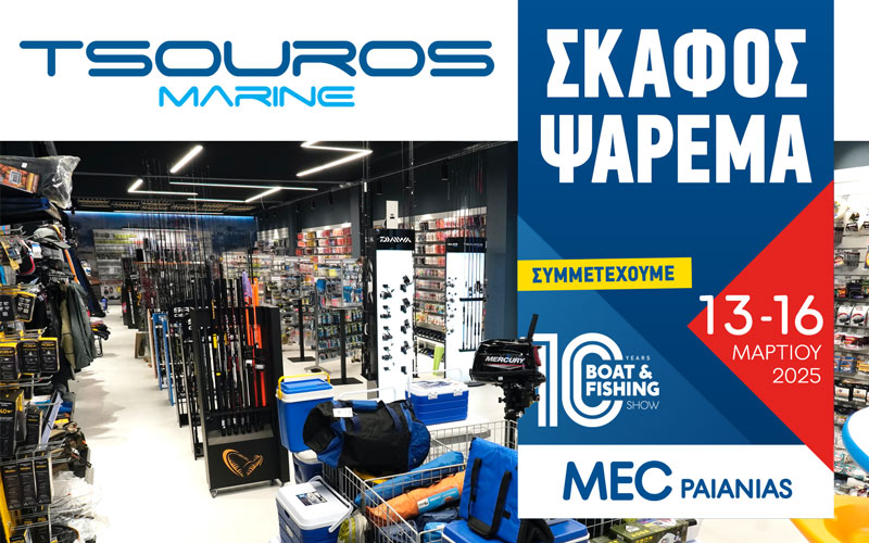 Η εταιρεία Tsouros Marine δραστηριοποιείται για πολλά χρόνια στον τομέα του εμπορίου ειδών αλιείας και ναυτιλιακού εξοπλισμού, μέσω του φυσικού καταστήματος στη Μυτιλήνη και του ηλεκτρονικού καταστήματος (www.tsourosmarine.gr).