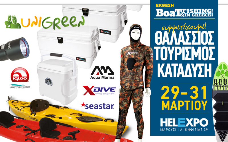Στο μεγάλο περίπτερο η Unigreen θα παρουσιάσει τα εξαιρετικής ποιότητας προϊόντα της. Τα ψυγεία Igloo, τα είδη υποβρυχίου κυνηγίου X DIVE και Salvimar καθώς και µία πλήρη σειρά από κανό – καγιάκ της εταιρίας AQUA MARINA, θα εντυπωσιάσουν όλους τους επισκέπτες της.
