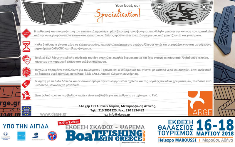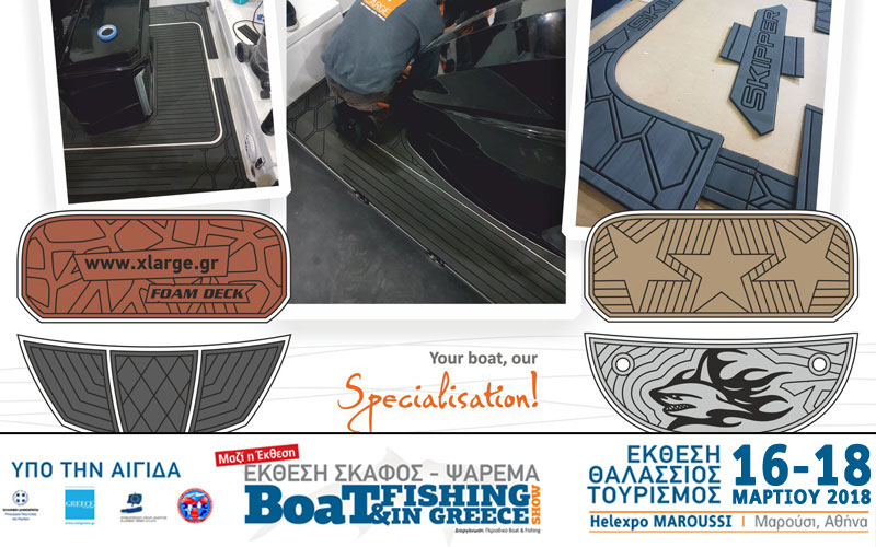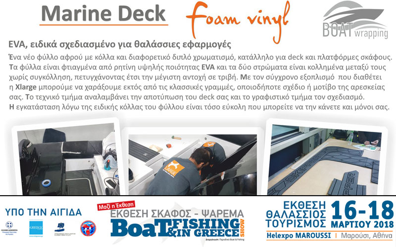 Ένα νέο φύλλο αφρού με κόλλα και διαφορετικό διπλό χρωματισμό, κατάλληλο για ντεκ και πλατφόρμες σκάφους. Τα φύλλα είναι φτιαγμένα από ρητίνη υψηλής ποιότητας EVA και τα δύο στρώματα είναι κολλημένα μεταξύ τους χωρίς συγκόλληση, πετυγχάνοντας έτσι την μέγιστη αντοχή σε τριβή. Με το σύγχρονο εξοπλισμό που διαθέτει η Xlarge μπορούμε να χαράξουμε εκτός από τις κλασσικές γραμμές, οποιοδήποτε σχέδιο ή μοτίβο της αρεσκείας σας.