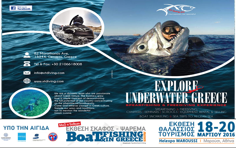 Η εταιρεία XT DIVING PRO του Τάσου Χάλαρη και η ομάδα του συμμετέχουν για δεύτερη χρονιά στη Boat & Fishing Show – Έκθεση Ψάρεμα Σκάφος στο Helexpo, Μαρούσι, με μεγάλο περίπτερο προβάλλοντας όλη τη γκάμα, στολές, πέδιλα και λοιπά προϊόντα ψαροτούφεκου και Κατάδυσης που κατασκευάζει και προωθεί εντός και εκτός της Ελλάδας!