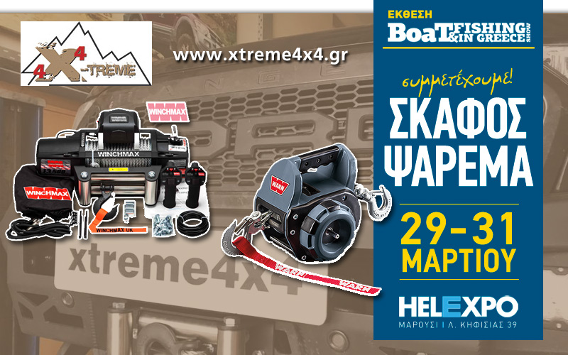 Η Xtreme 4×4 ξεκίνησε το 1999 σε ένα μικρό μαγαζί στην Λεωφόρο Αμφιθέας στο Παλαιό Φάληρο. Σκοπός της ήταν και εξακολουθεί να είναι ο εξοπλισμός τετρακίνητων οχημάτων, με απόλυτο κριτήριο τις ανάγκες των ιδιοκτητών τους και την χρήση για την οποία τα προορίζουν. Έχοντας σα βάση τη διαρκή ικανοποίηση του πελάτη μας μέσω της παροχής υψηλού επιπέδου υπηρεσιών, φέραμε μια νέα εποχή στην ελληνική αγορά εξοπλισμού τετρακίνητων οχημάτων, η οποία μέσα σε λίγα χρόνια μας οδήγησε στην κορυφή της επιτυχίας. Σήμερα σε έναν ιδιόκτητο χώρο 1.450 τ.μ. η Χtreme 4×4 διαθέτει πρότυπους χώρους αποθήκευσης των εμπορευμάτων της, χώρο τοποθετήσεων αξεσουάρ και βελτιώσεως των οχημάτων, εκθεσιακό χώρο, γραφεία, αλλά και έναν υπέροχο χώρο αναμονής των πελατών, όπου έχουν στη διάθεσή τους τηλέφωνο, fax καθώς και ευρυζωνική σύνδεση internet. Όραμά μας είναι η συνεχής βελτίωση των υπηρεσιών που προσφέρουμε, έτσι ώστε οι πελάτες μας να μένουν πάντα απόλυτα ικανοποιημένοι, αλλά και να εξακολουθούμε πάντα να είμαστε μπροστά από τον ανταγωνισμό μας. Στην έκθεση Boat&fishing SHOW 29 -31 Μαρτίου 2019, HELEXPO MAROUSSI, θα παρουσιάσει όλα εκείνα τα εργαλεία που χρειάζεται το αυτοκίνητο μας, για τη σωστή ρημούλκηση του σκάφους μας, όπως εργάτες, ηλεκτρικά βίντζια και όλα τα νέα προιόντα της πλούσια γκάμας της, τόσο για το αυτοκίνητο όσο και για το τρέιλερ.